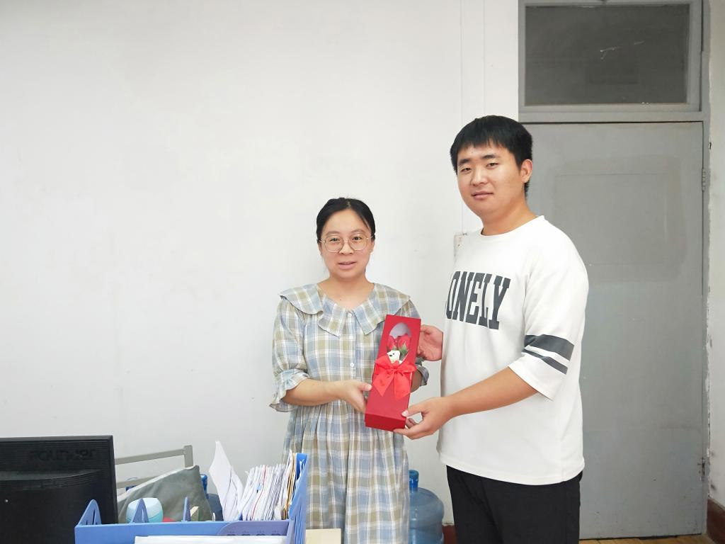 3、全体机电工程学院团学干部为老师们献上精心筹备的小礼物,浓浓尊师意 款款爱生情为本次主题增添了浓厚的感恩气氛,师生情在心与心之间的交流中轻轻流露。一句句“您好”的问候,让老师感动不已,一声声“感恩”的心声,让老师甜透心田!