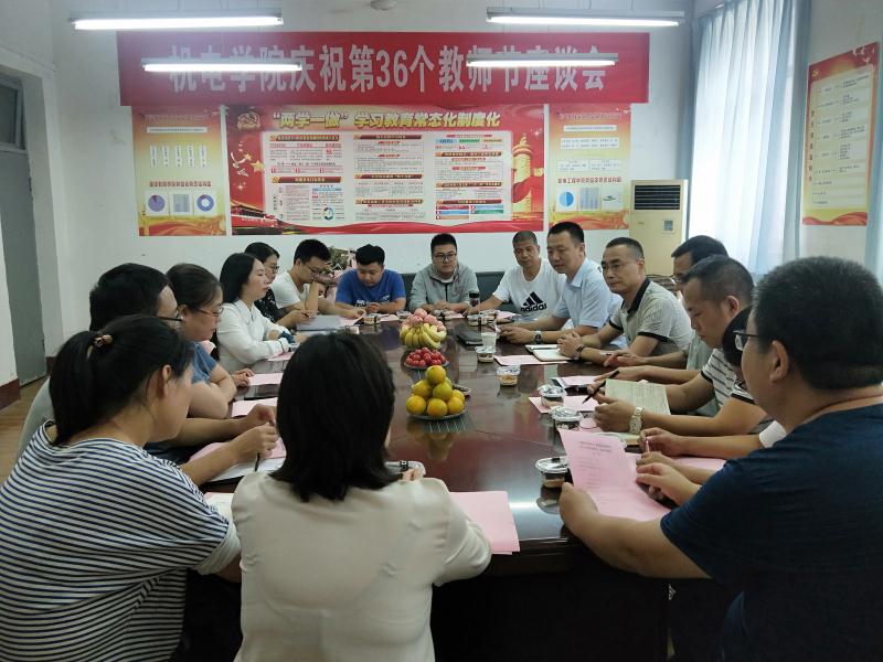 为庆祝第36个教师节,根据学校安排,2020年9月10日下午3点,机电工程学院在朝阳校区一号教学楼205室开展教师节走访座谈活动。渭南职院副院长王韦华以及机电学院部分教师代表参加,机电学院副院长关斌主持。