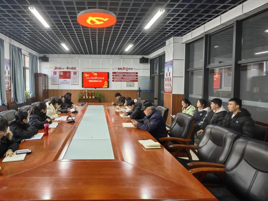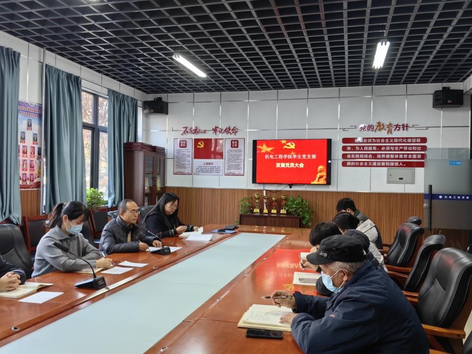 2025年12月8日,机电工程学院学生党支部在机电一楼会议室召开党员发展大会,学生党支部全体党员及张浩磊等4名发展对象参加会议,会议由党支部副书记杨鹏同志主持。