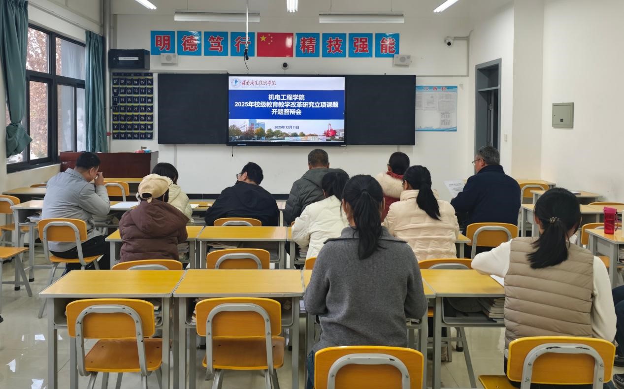 为扎实推进教育教学改革,提升人才培养质量,凝聚教研合力,落实学校有关工作安排部署和文件要求,12月11日下午,机电工程学院在209教室举办了2025年校级教育教学改革研究立项课题开题答辩会。会议邀请白永祥、李敏宁、原渊、邵航、李文昌等学院学术委员会资深教授、专业带头人担任评审,各立项课题主持人及全体团队成员、近年新进教师参会,会议由副院长王勇主持。